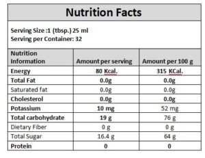 Ingredients: Sugar, Distilled aqueous extracts (Sandal Wood) Food Color (E102,E110), Acidity Regulator (E330), Preservative (E-211)