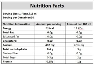 Soybean, Water, Acidity Regulators (E260, E330), Wheat Molasses, Permitted Food Colour (E150d) & Preservative: Sodium Benzoate (E211).